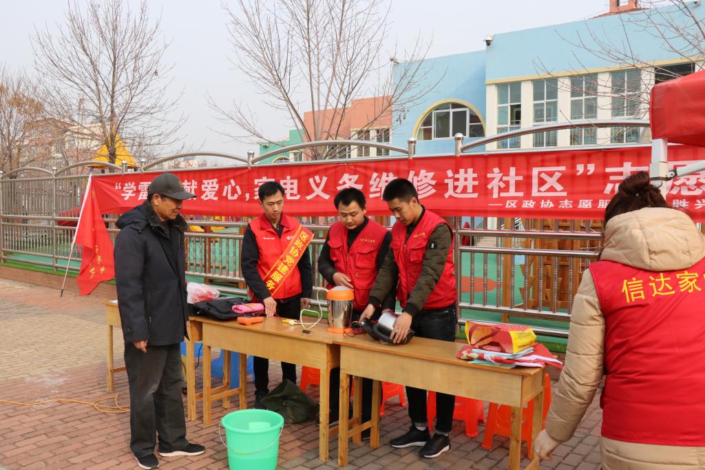 3月22日,垦利区政协志愿服务队携手政协委员李善学所在企业,在胜兴花园开展“学雷锋,献爱心,家电义务维修进社区”志愿服务活动,免费为社区居民提供家电维修服务。